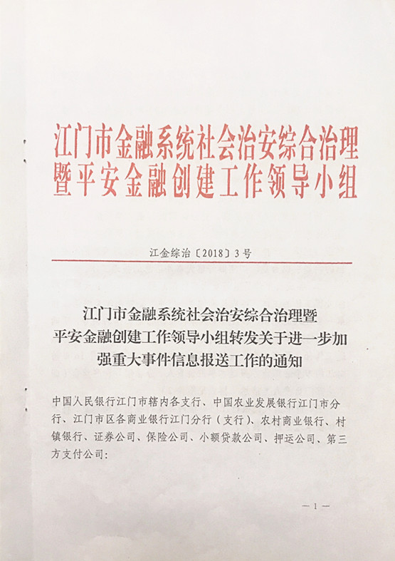 江门市金融系统社会治安综合治理暨平安金融创建工作领导小组