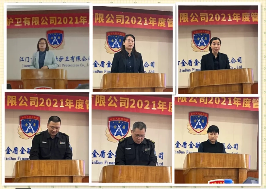 为进一步加强中层干部队伍建设,提高履职能力,2022年1月7日江门市金盾金融护卫有限公司召开2021年度管理干部述职大会。此次大会旨在全面回顾2021年工作情况,发现并分析过去一年的工作成绩与不足,找出空间和差距,做好提质增效与2022年工作计划。